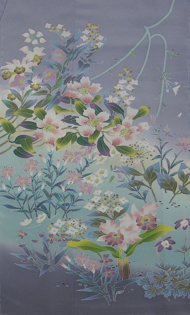 紫がかったグレー地に四季の花々をあしらっています。