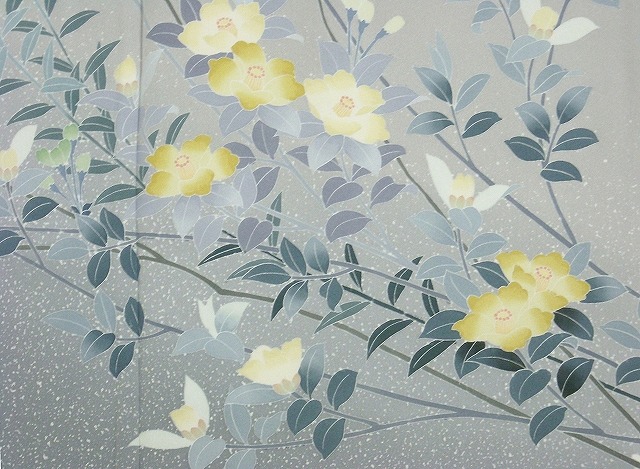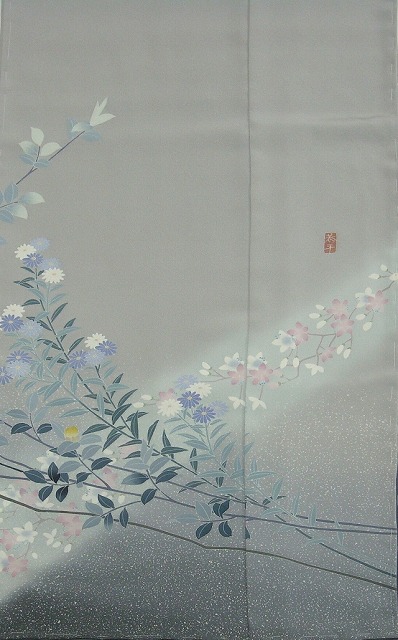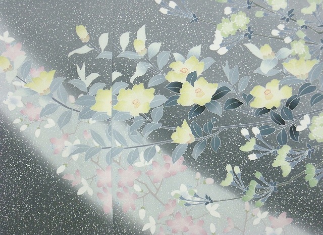 全体に四季の花がのびやかに表現されていて、抑えた配色の中にも華やかさがただよいます。
